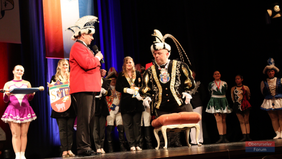 Als der Höhepunkt des Abends erreicht war, erteilte er Ex-Prinzessin Vanessa das Wort, die weitere ehemalige Prinzen und Prinzessinnen auf die Bühne bat. Nachdem sie sich beim Ex-Prinzenpaar Patrick und Yvonn für ihre Kampagne bedankt hatte, wurde der Prinzenanwärter Steffen von seinem Hofstaat und der Ehrengarde zur Bühne begleitet.