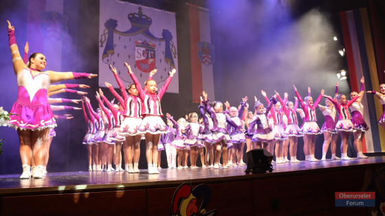 Alle fünf Karnevalsvereine der Stadt traten auf der Bühne auf. Die MiniMinis, Minis, Midis und Maxis vom BCV machten den Anfang und tanzten hintereinander und anschließend gemeinsam.