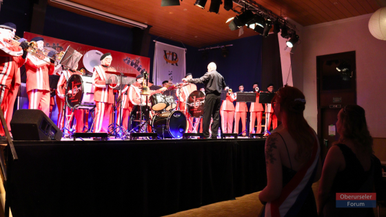 Zum Abschluss des Abends trat die Frohsinn Brassband auf unter der Leitung von Jürgen Tauber und nach drei Liedern schnappten sich Emily und Michèle ihre Trompeten und spielten den Rest des Abends mit! (gt)