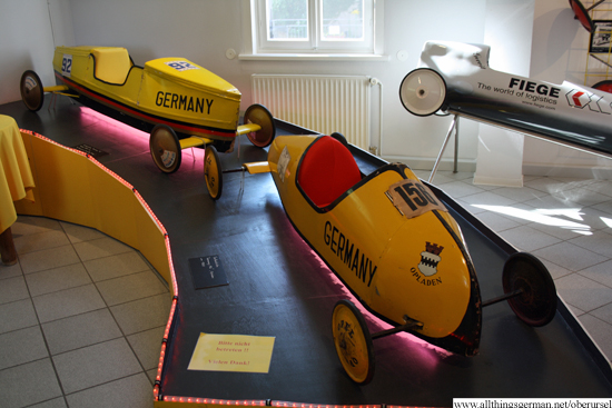 The museum, which is located at the upper end of the Marktplatz, not only has exhibits on the soap box races, but also on the castle in Bommersheim and about the various mills that were located along the Urselbach, including many of the original machinery which has been donated over the years. Some of the finds from the Celtic settlement near the Hohemark are also on display.